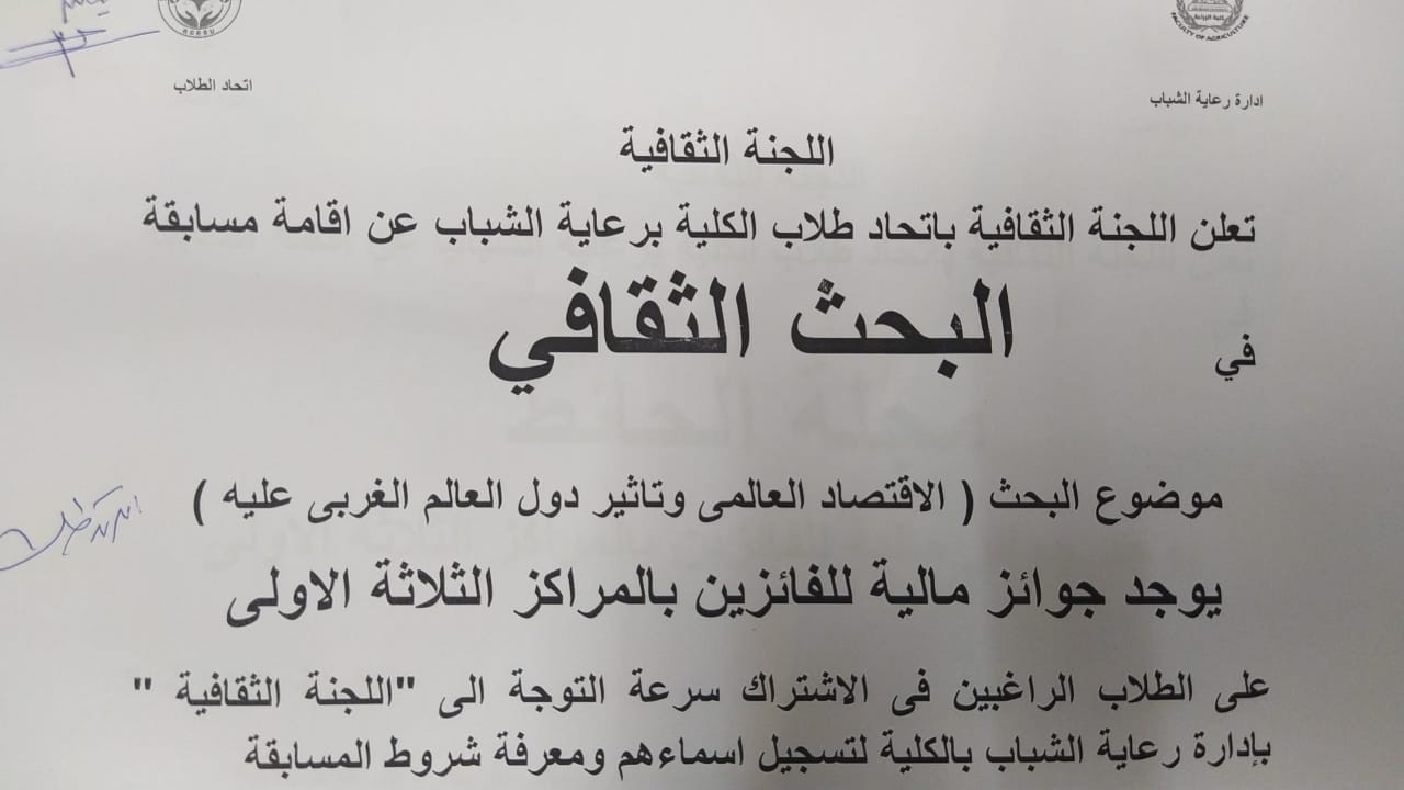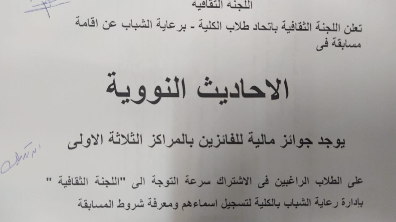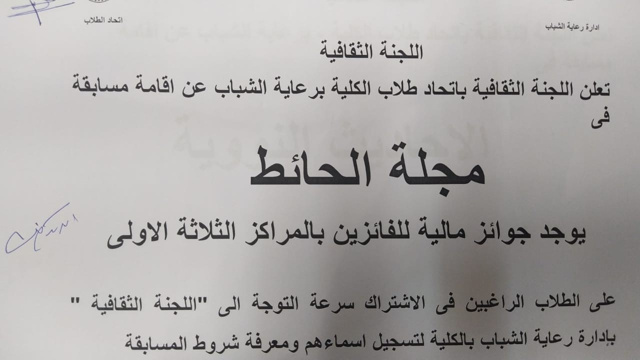 اعلان عن مسابقات اللجنة الثقافية بإدارة رعاية الشباب